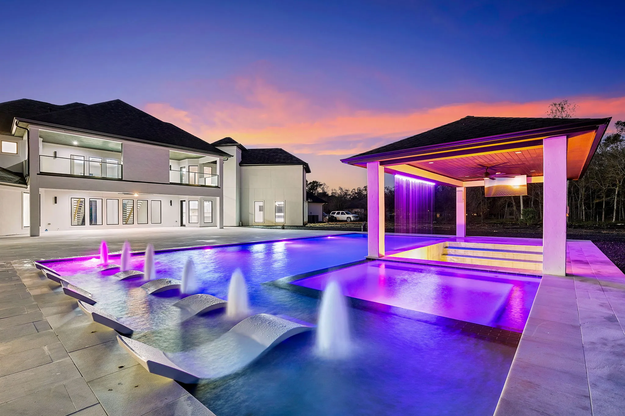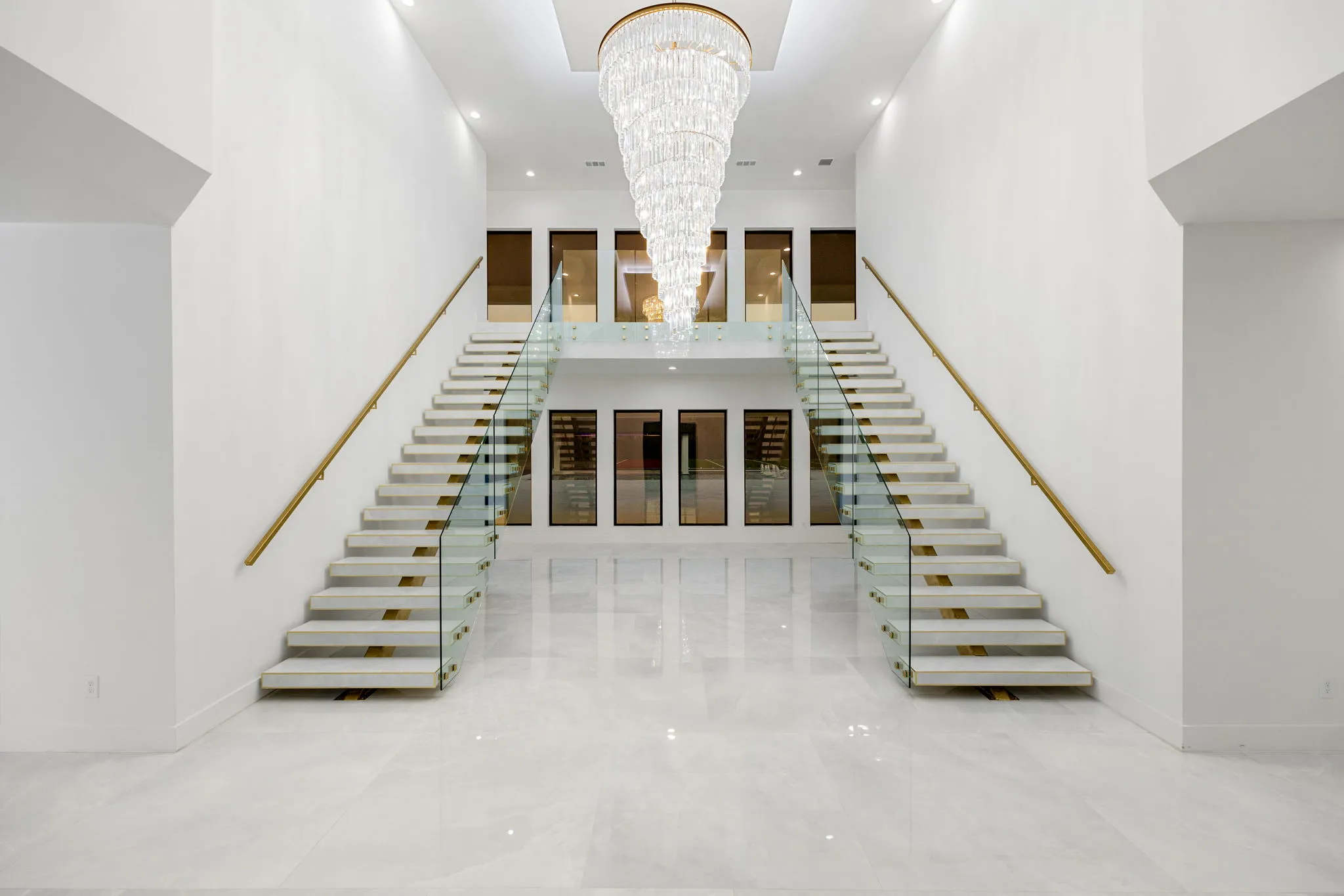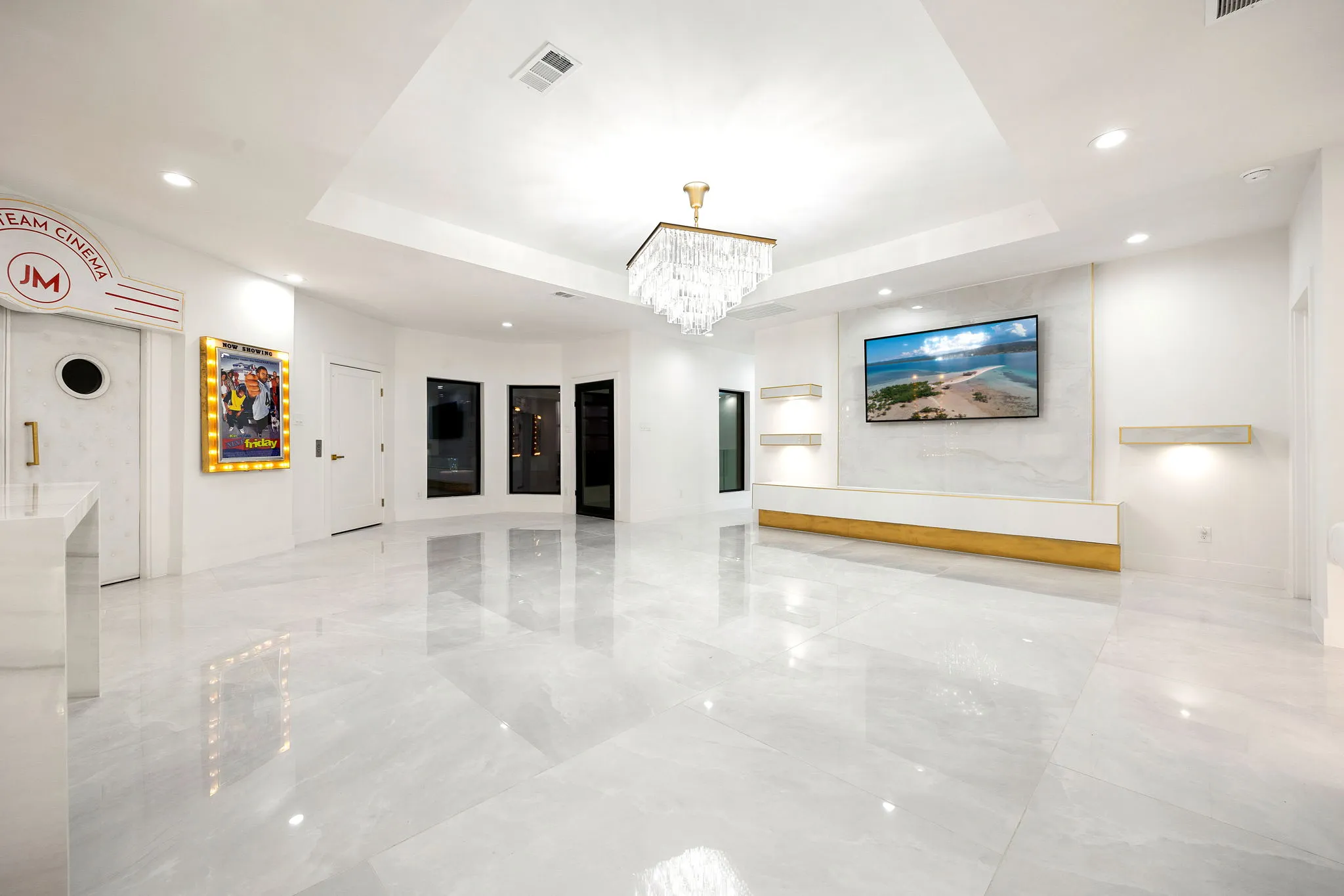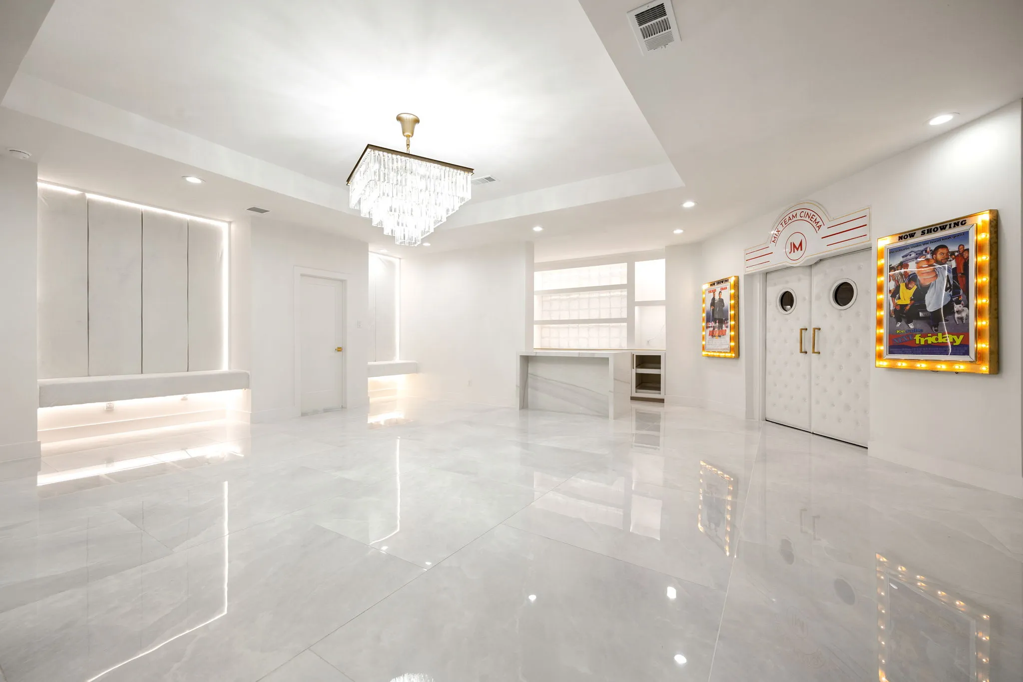 This monumental construction build unfolded on an expansive 3-acre estate in Missouri City, designed for an NFL client with an unparalleled appreciation for elegance and opulence. Every detail was meticulously crafted to embody a stunning white aesthetic that radiates luxury and sophistication. The entrance boasts an awe-inspiring double staircase, flanked by an enormous crystal chandelier that sparkles like a constellation, welcoming guests into a realm of grandeur.