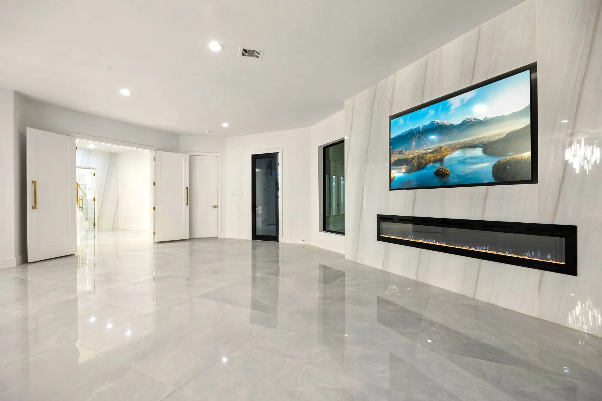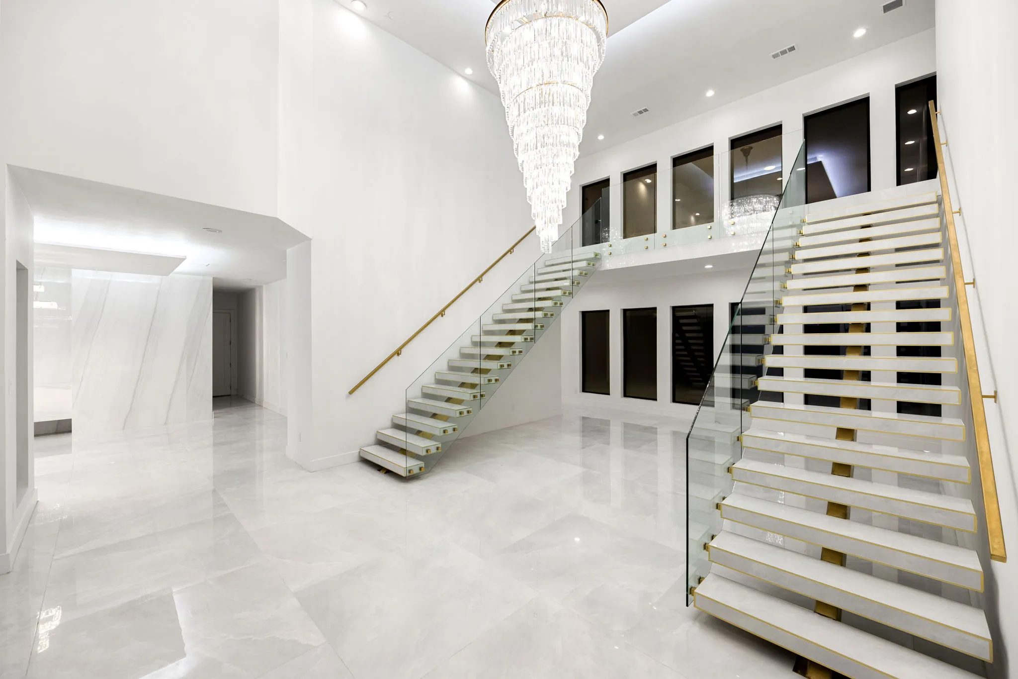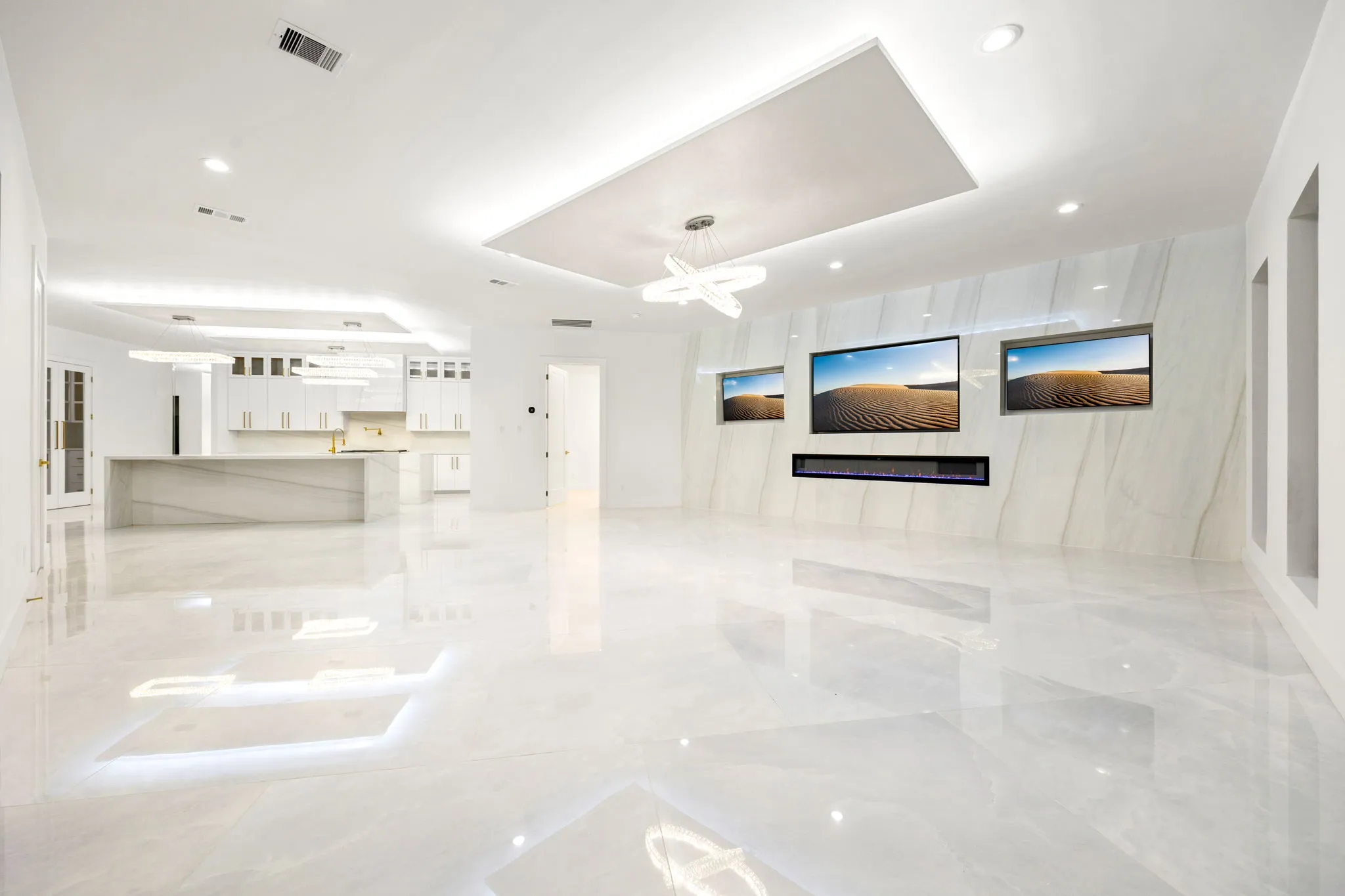 This monumental construction build unfolded on an expansive 3-acre estate in Missouri City, designed for an NFL client with an unparalleled appreciation for elegance and opulence. Every detail was meticulously crafted to embody a stunning white aesthetic that radiates luxury and sophistication. The entrance boasts an awe-inspiring double staircase, flanked by an enormous crystal chandelier that sparkles like a constellation, welcoming guests into a realm of grandeur.