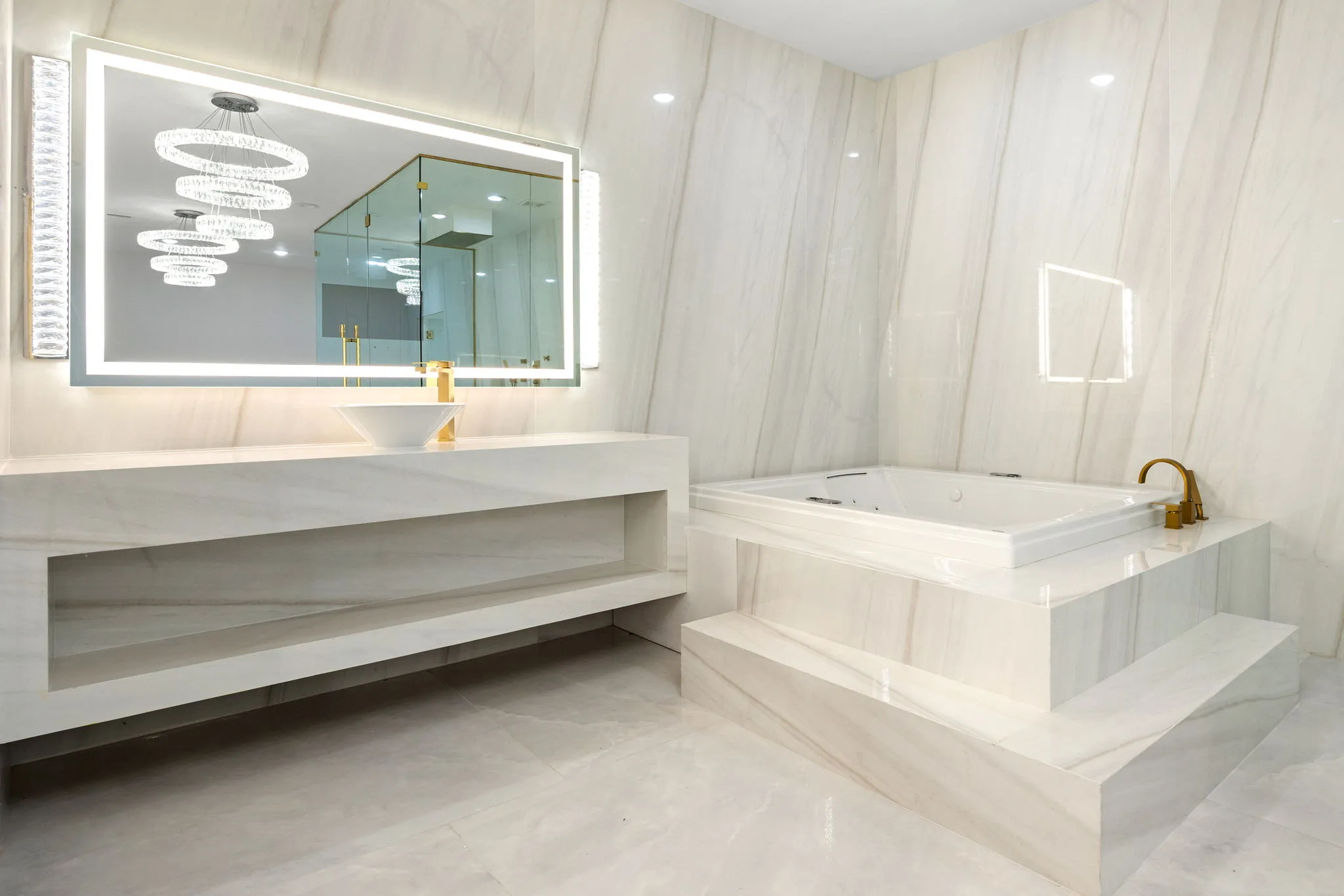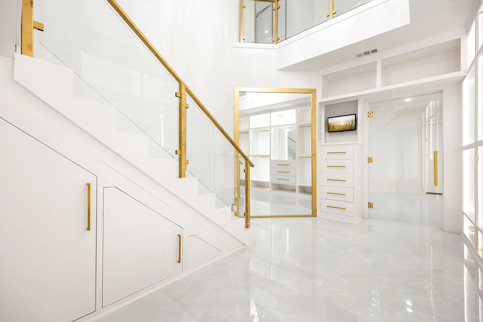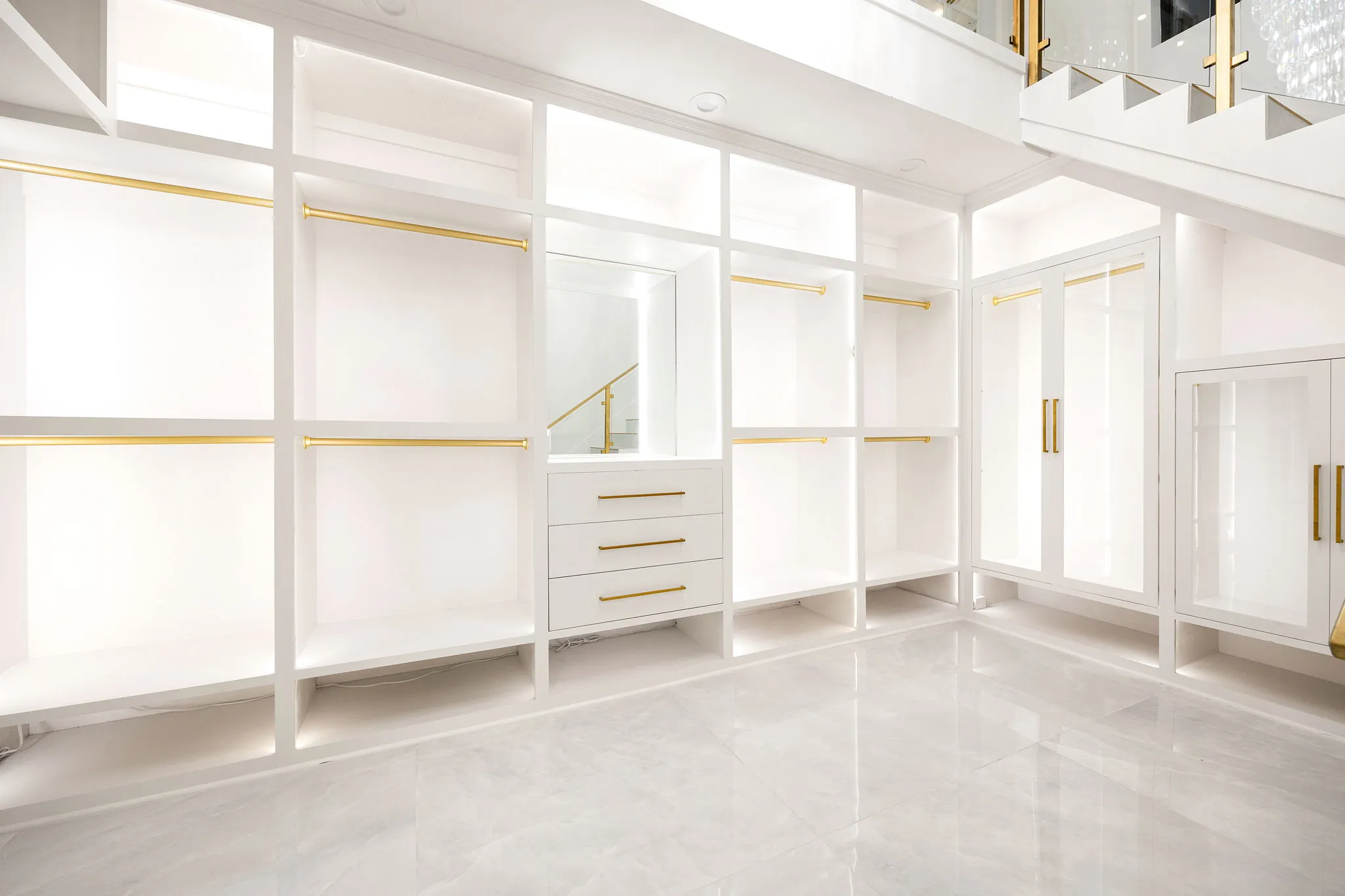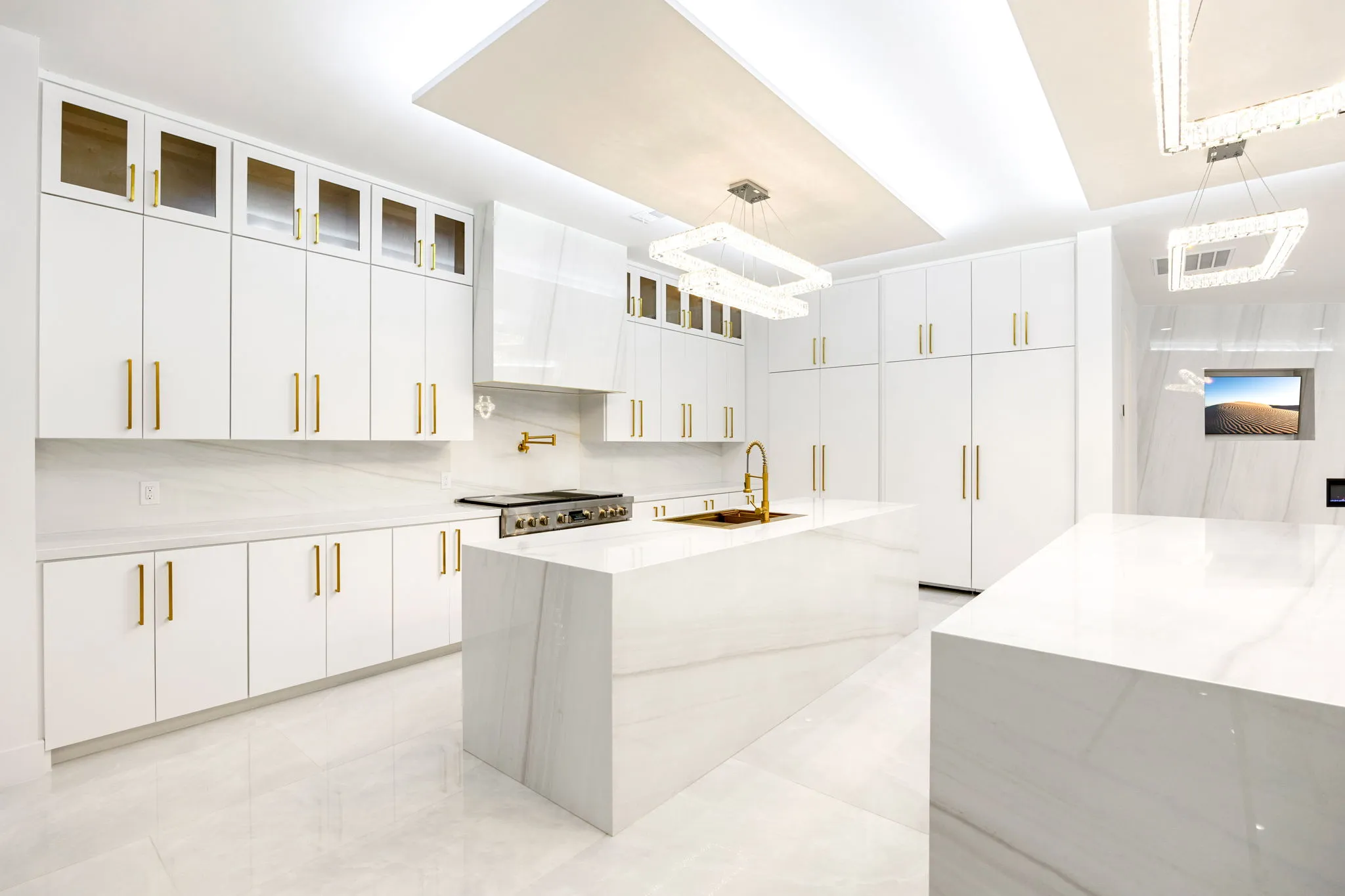 This monumental construction build unfolded on an expansive 3-acre estate in Missouri City, designed for an NFL client with an unparalleled appreciation for elegance and opulence. Every detail was meticulously crafted to embody a stunning white aesthetic that radiates luxury and sophistication. The entrance boasts an awe-inspiring double staircase, flanked by an enormous crystal chandelier that sparkles like a constellation, welcoming guests into a realm of grandeur.