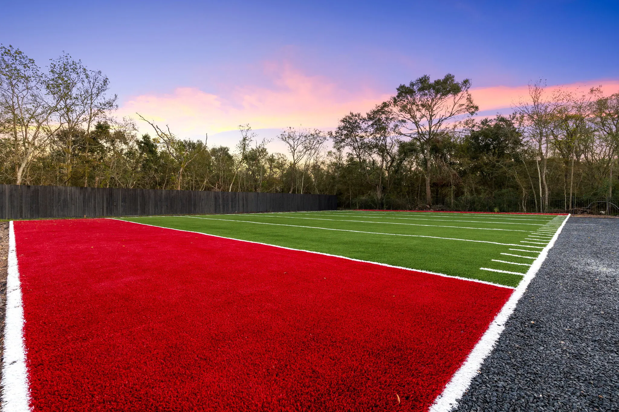 This architectural masterpiece also offers double entertainment rooms, five lavish bedrooms, and six opulent baths, creating a sanctuary for relaxation and social gatherings. But the extravagance doesn't stop indoors; the outdoor space is a dream come true, featuring a private football field, a gourmet outdoor kitchen, and a resort-style pool complete with a Jacuzzi and a fire pit, all surrounded by lush, professionally landscaped grounds.