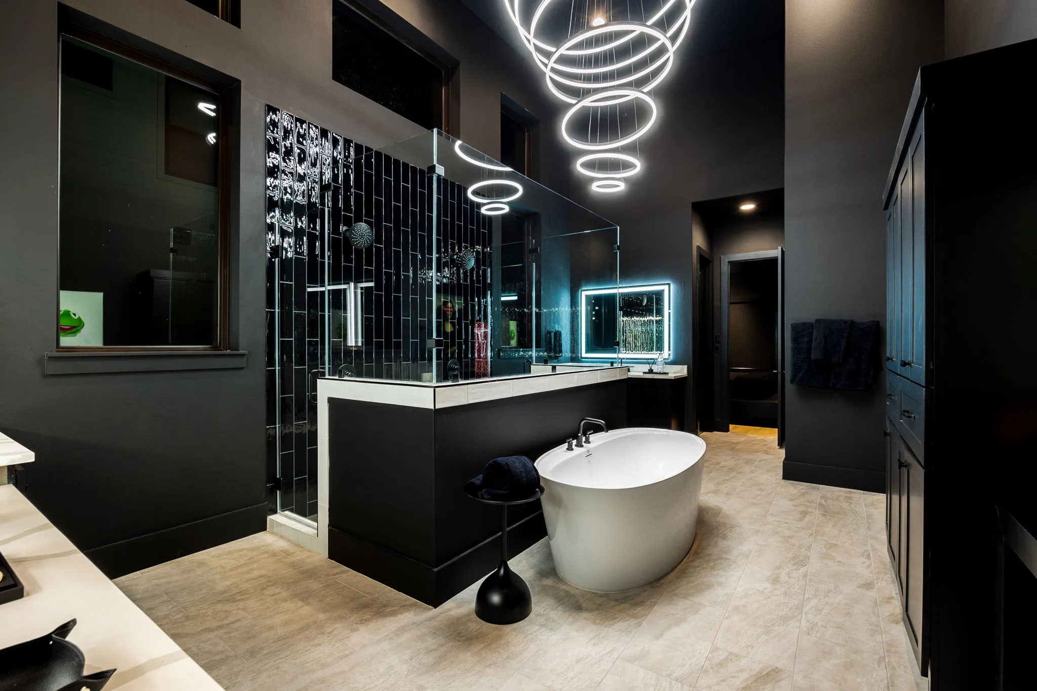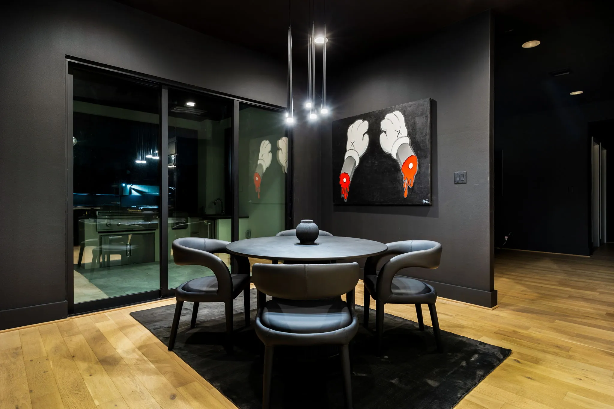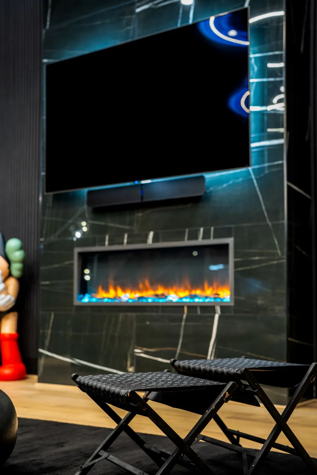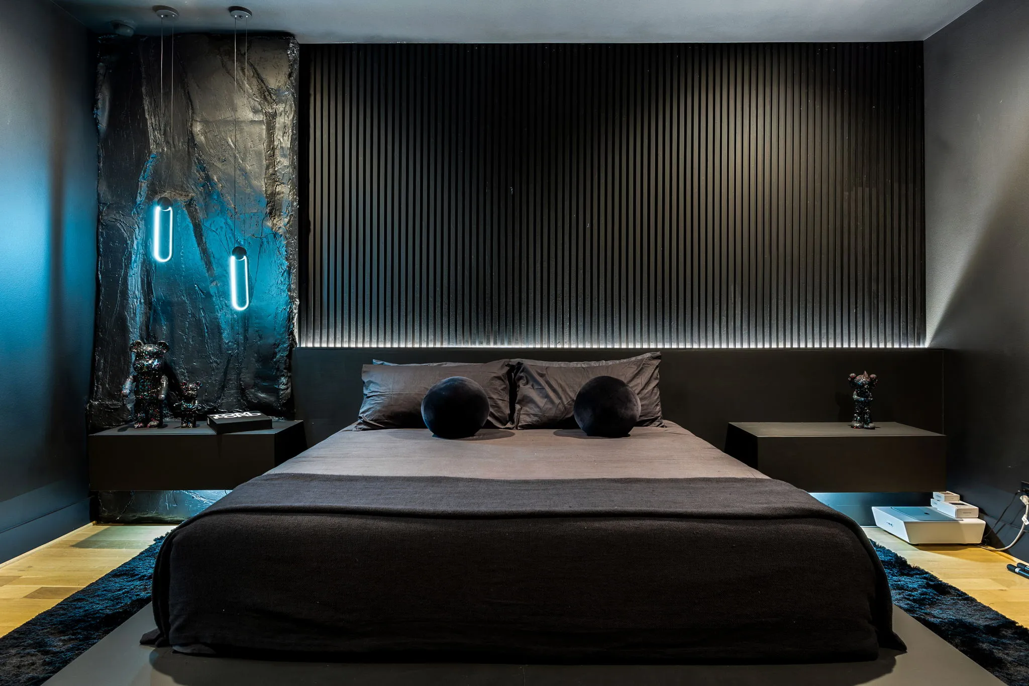 This innovative interior design project was crafted for a dynamic 21-year-old NFL client who envisioned a bold bachelor pad, centered around his favorite color: black. Embracing this unique vision, I transformed the space into an extraordinary home that stands out as a true masterpiece. Central to the design is a stunning glass staircase that adds a touch of elegance and openness, complemented by modern chandeliers that illuminate each area with a sophisticated glow. The walls are adorned with exquisite European artwork, enhancing the artistic ambiance of the space, while an Italian-made fireplace serves as a luxurious focal point. In the movie theater, a Rolls-Royce star ceiling creates a celestial experience, complete with custom LED panels that can adjust the mood for any occasion. This design beautifully blends elements of a playground with the sophistication of an art museum, resulting in an atmosphere that is both playful and visually striking. I am grateful for the opportunity to bring this concept to life, creating a space that reflects my client's youthful spirit and sets a new standard in modern living.
