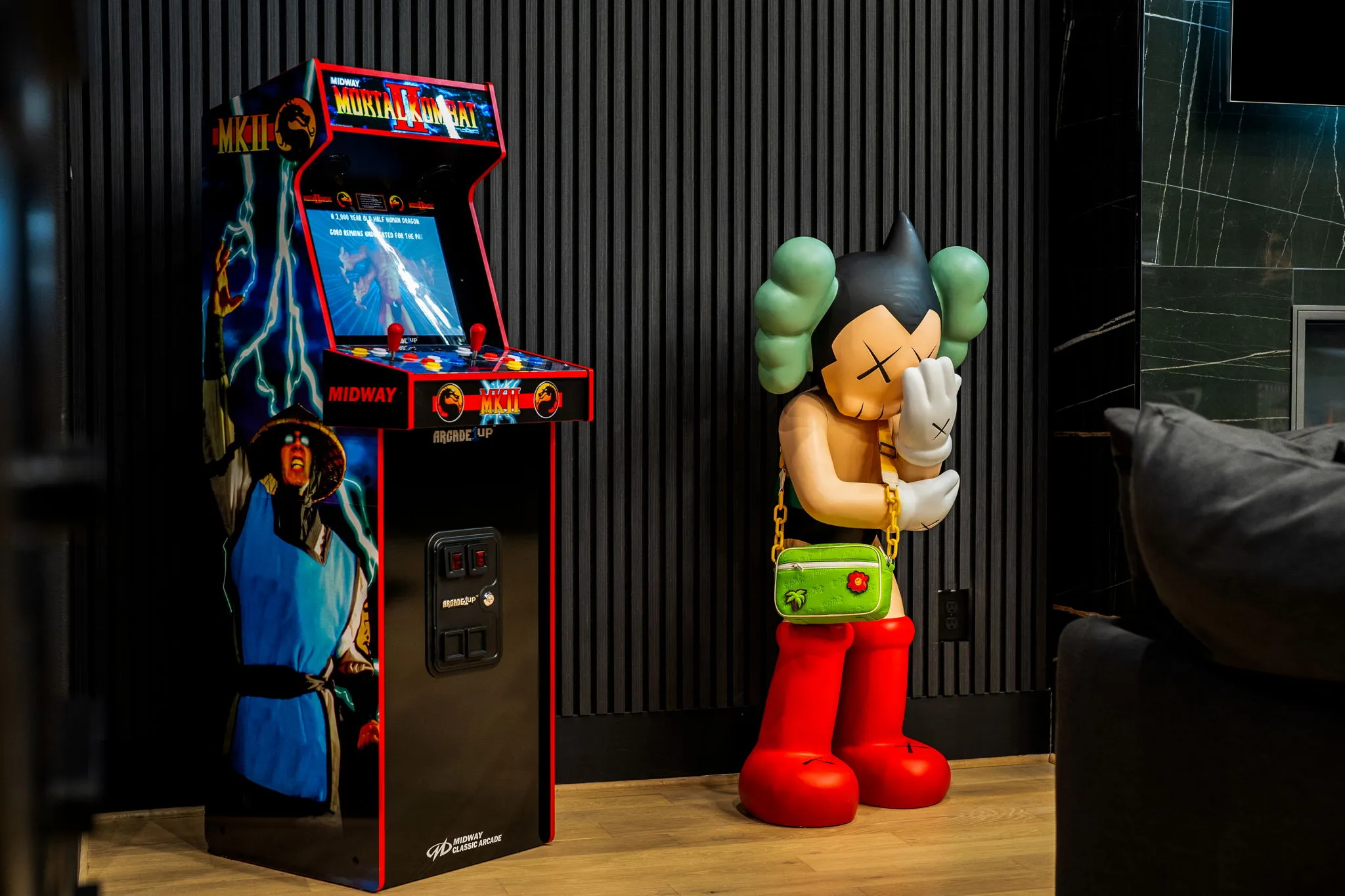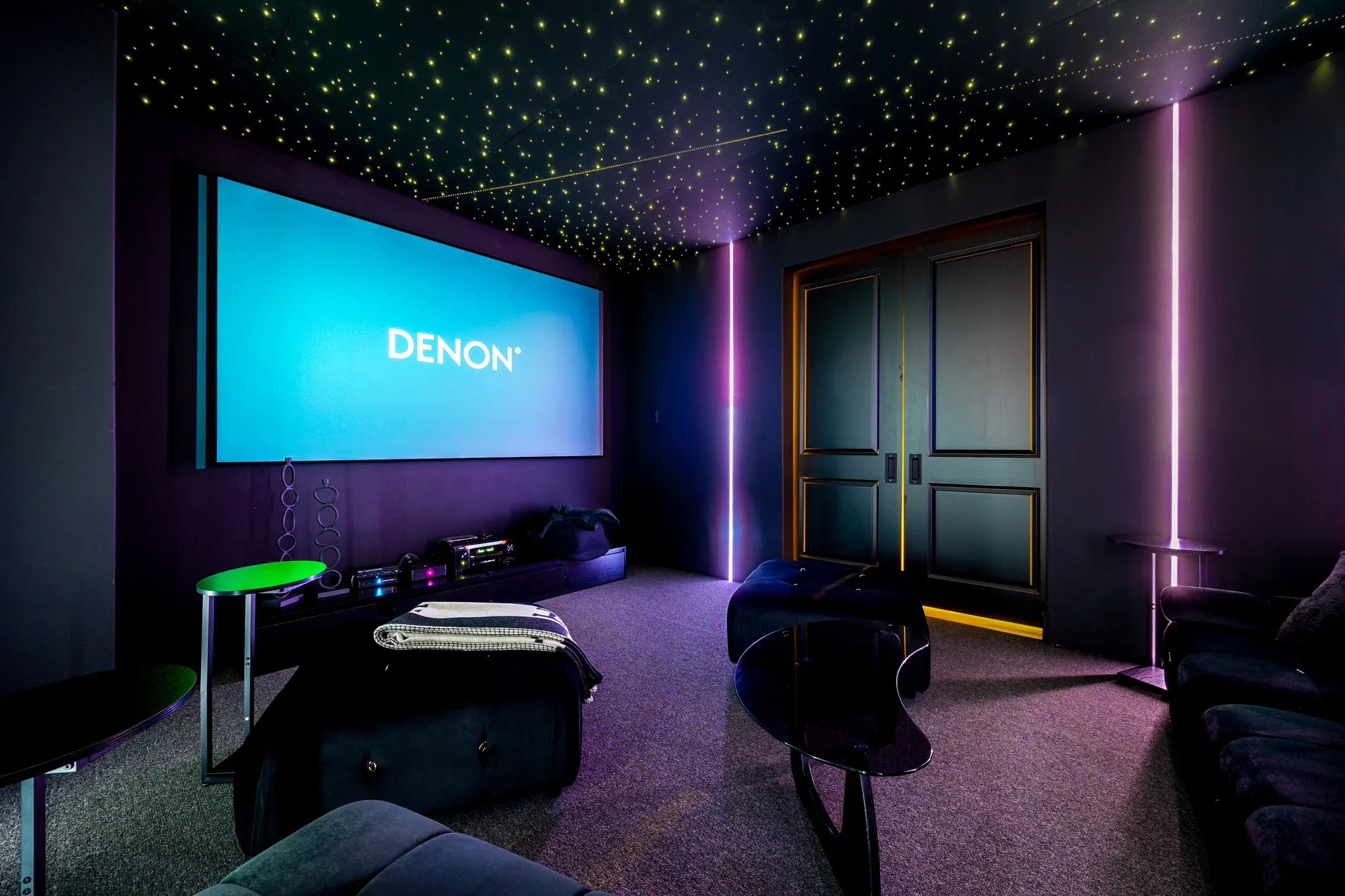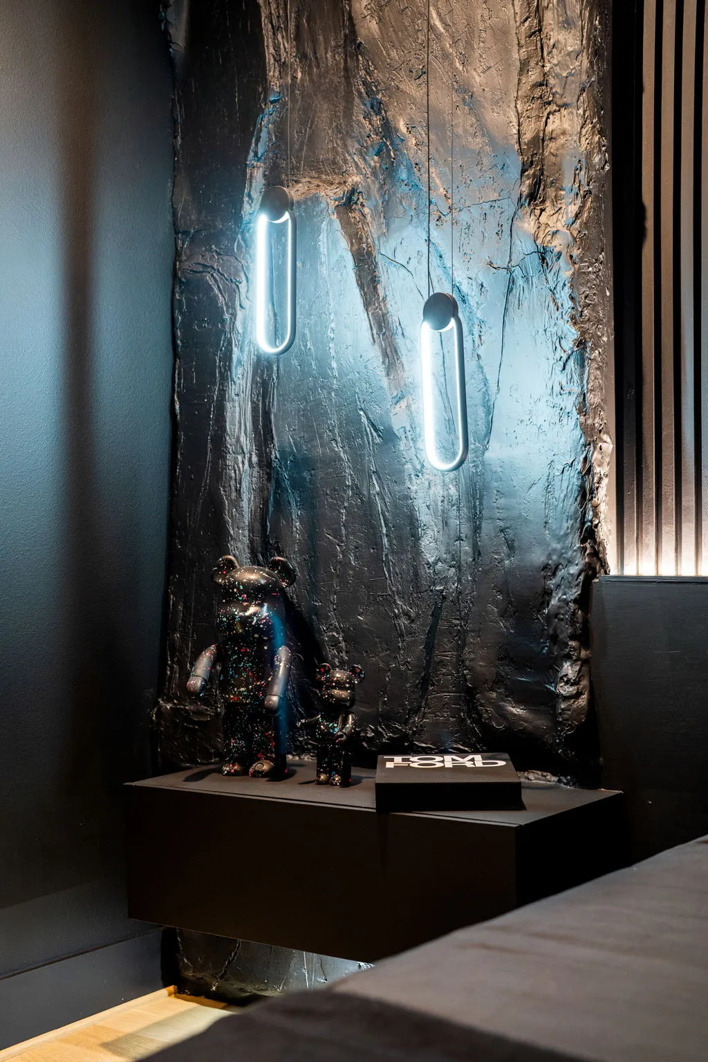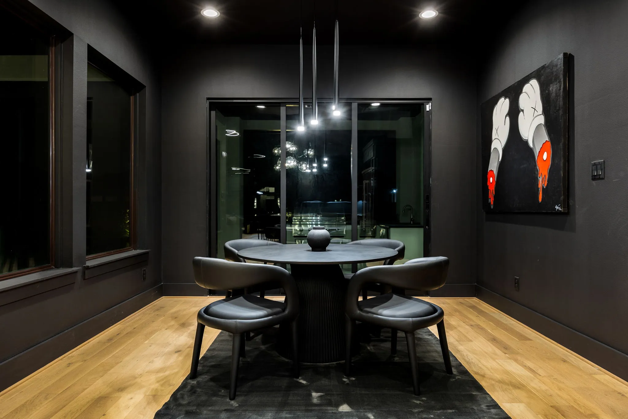 This innovative interior design project was crafted for a dynamic 21-year-old NFL client who envisioned a bold bachelor pad, centered around his favorite color: black. Embracing this unique vision, I transformed the space into an extraordinary home that stands out as a true masterpiece. Central to the design is a stunning glass staircase that adds a touch of elegance and openness, complemented by modern chandeliers that illuminate each area with a sophisticated glow. The walls are adorned with exquisite European artwork, enhancing the artistic ambiance of the space, while an Italian-made fireplace serves as a luxurious focal point. In the movie theater, a Rolls-Royce star ceiling creates a celestial experience, complete with custom LED panels that can adjust the mood for any occasion. This design beautifully blends elements of a playground with the sophistication of an art museum, resulting in an atmosphere that is both playful and visually striking. I am grateful for the opportunity to bring this concept to life, creating a space that reflects my client's youthful spirit and sets a new standard in modern living.